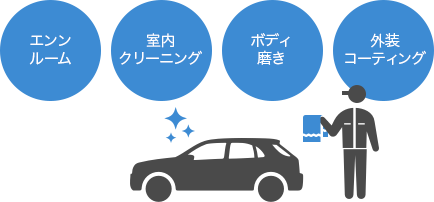 - 目立つ傷の補修や外装コーティング、内装クリーニングまで、全ての車両の仕上げ品質にこだわっています。