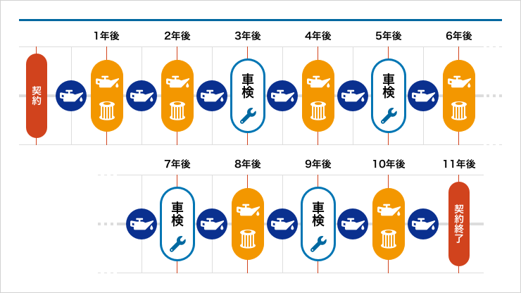 「オイル交換無料クーポン」をご利用いただくことで、エンジンオイルを半年毎、オイルエレメントを1年毎(相当分)に、無料で交換できます。