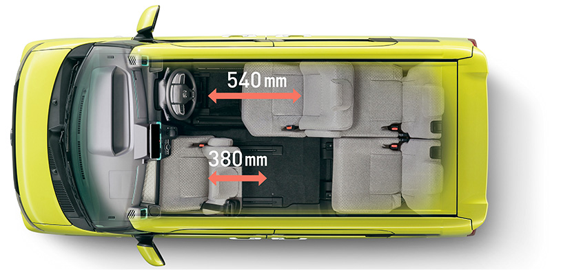 それに加えて運転席が前後に540mm、助手席が380mmスライドしますので、運転席から後席などへきわめてスムーズにアクセスできます。これが「ミラクルウォークスルーパッケージ」です。