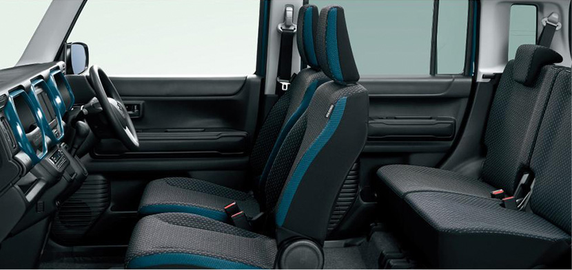 ハスラーの後席はスライド機構を持っているため、後端まで移動させれば、身長が高い大人4名でもゆったり乗車することができます。またハスラーの後席はリクライニング機構も付いていて、自分に合った着座姿勢への調整を簡単に行えます。