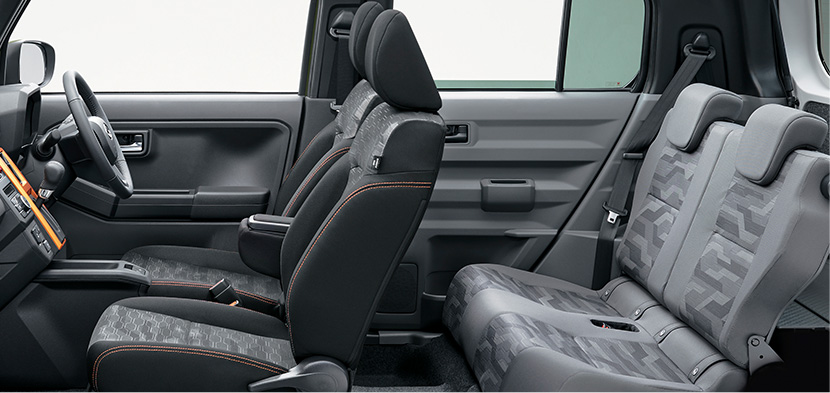 後席は左右独立してスライドとリクライニングが行えるスズキ ハスラー。