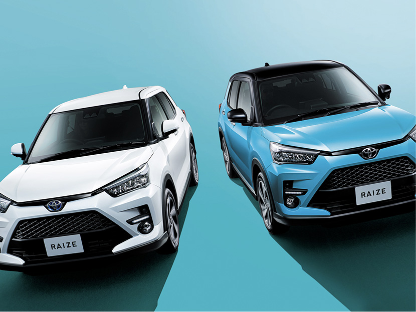 こちらがトヨタ ライズ。向かって左がハイブリッド車で、右がガソリン車。