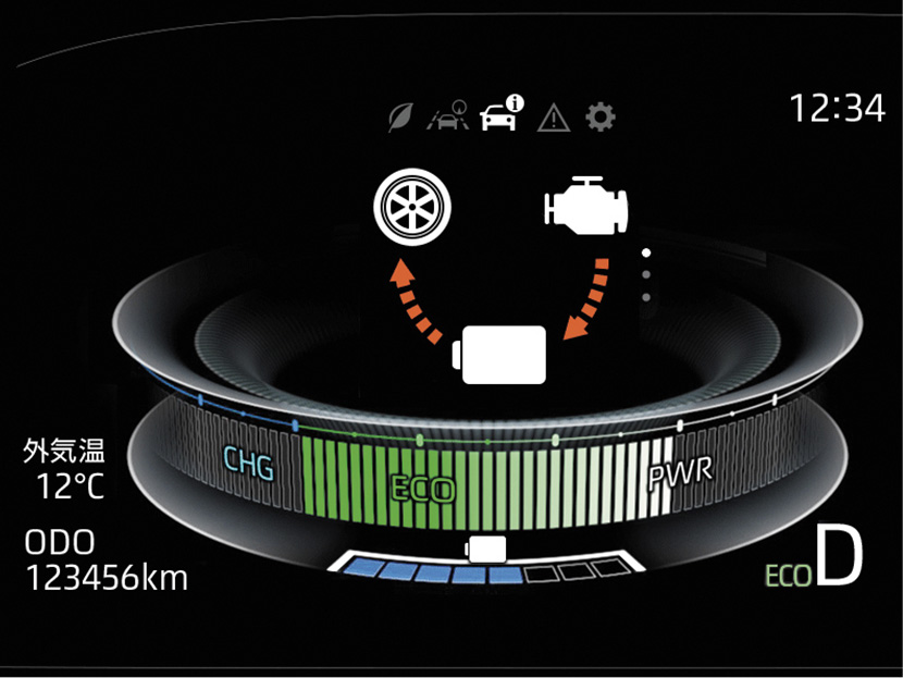このハイブリッド、エンジン(1.2L)は発電機を回すことに徹し、その電力をバッテリーに貯め、それでモーターを回して走るという仕組みだ。日産の「e-POWER」と同じ形式であり、専門的には「シリーズ式」と呼ばれる。