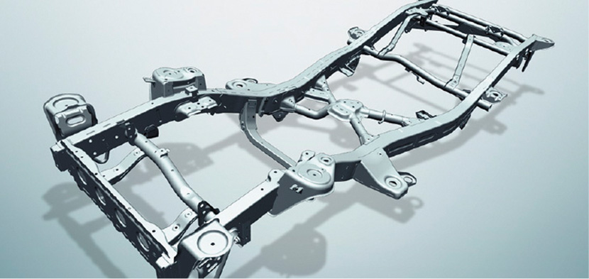 モノコック構造という方式のボディ兼フレームを採用している一般的な乗用車と違い、スズキ ジムニーははしご型のフレームの上にボディを載せるという、トラックと同じ方式。そのほうが、オフロードを走るには圧倒的に有利なのだ。