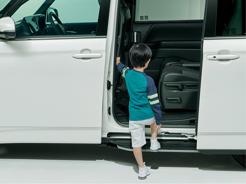 パワースライドドア装着車の助手席側には、ステップが自動的に出てくる「ユニバーサルステップ」が。