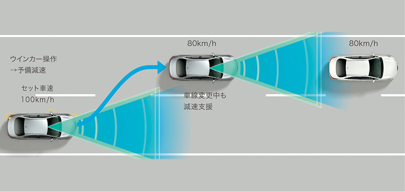 高速道路で前方の車両を追従してくれるアダプティブ・クルーズ・コントロールがついに装着された新型ノア/ヴォクシー。ウインカーを出すだけで車線変更を行うこともできる。
