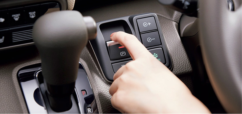 直近の一部改良でパーキングブレーキは足踏み式からスイッチ式に。