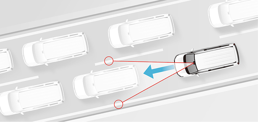 高速道路での低速走行の時、前走車の車速変化に合わせながら車間距離を保ち、車線の中央付近を維持するようにステアリング操作を支援してくれる「トラフィックジャムアシスト(渋滞運転支援機能)」も全グレードに標準装備