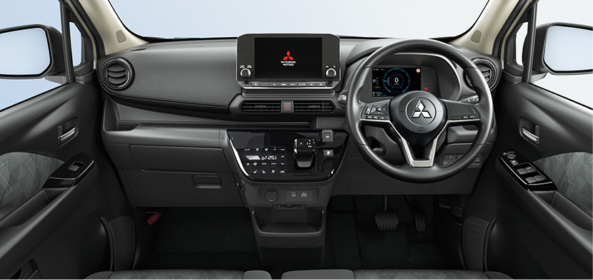 インパネまわりのデザインも、三菱 eKクロスEVはガソリン車とおおむね同一となっている。