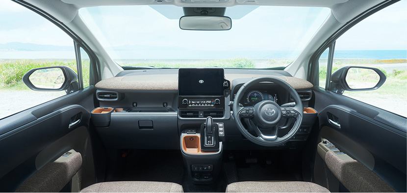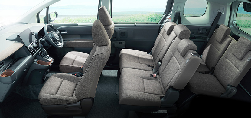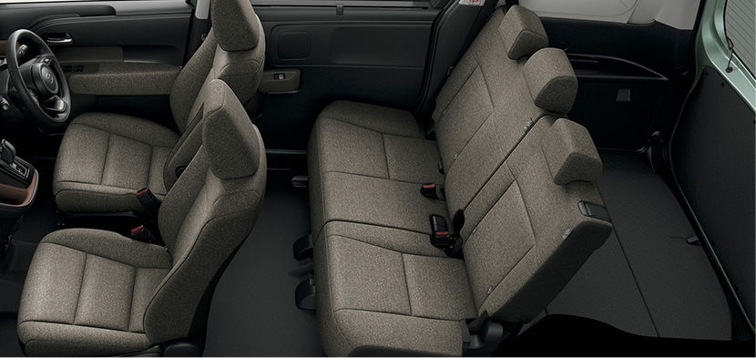 車内は、特に2列目シートの快適性が向上しました。コンパクトミニバンとしてはトップレベルの前後席間距離が確保され、2列目シートの足元スペースは、大きな買い物かごがそのまま置けるほどの広さ。また室内高1300mmですので、小学生中学年までのお子さんでしたら車内で立ったまま着替えができるはずです。またエアコンの暖気/冷気を効率的に循環させる「天井サーキュレーター」や、日差しを遮る「後席用サンシェード」といったアイテムもオプションとして用意されました。