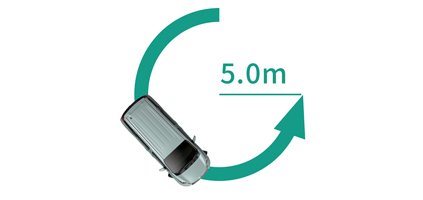 小型車であるトヨタ アクアにほぼ匹敵する5.0mという最小回転半径は、ミニバンとしてはかなりの数字。ちなみに競合であるホンダ フリードは5.2m