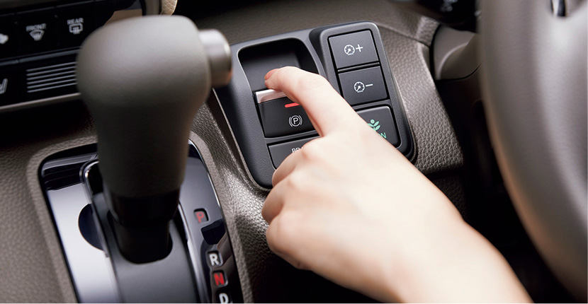 指で軽く押したり引いたりするだけでパーキングブレーキのON/OFFができるホンダ N-BOX