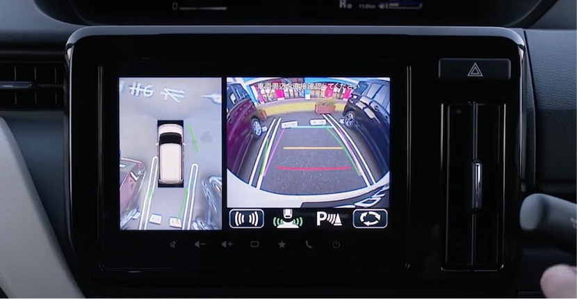 スズキ ソリオの項でも触れましたが、お出かけ時の高速道路SA・PAなどで無駄に接触事故を起こさないためにも、自車を真上から見るように周囲を確認できるパノラミックビューモニターは、ないよりはあったほうが絶対にいい装備です。最上級グレードであるZには「床下透過表示機能付き」というパノラミックビューモニターがオプション設定されていますが、Gで選択できる普通のパノラミックビューモニターでも十分です。