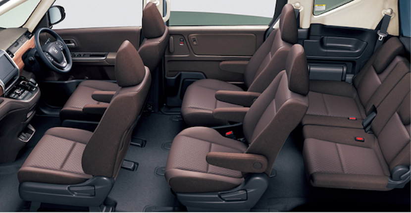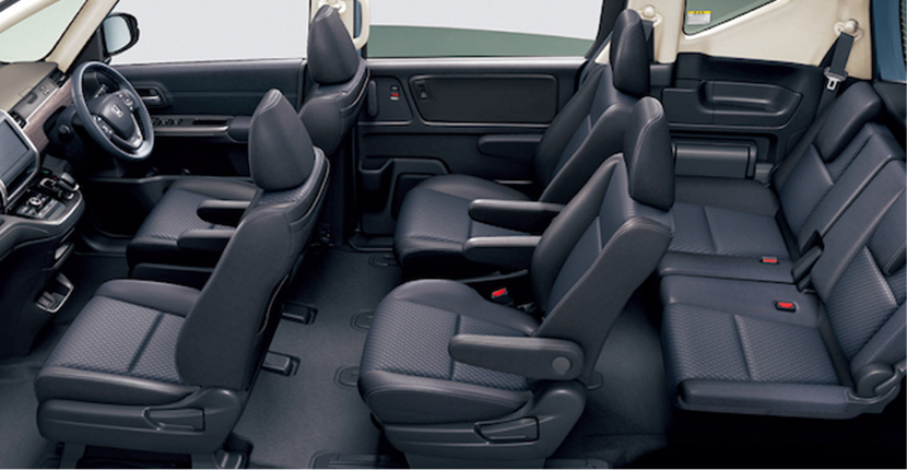 「Sパッケージ」を選択したホンダ フリードの車内。標準では「モカ」となる内装色が、Sパッケージではシャープなブラック系になる