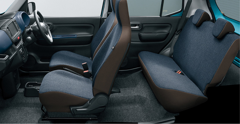 スズキ アルトの前後席。シートにはデニム調の表皮を採用