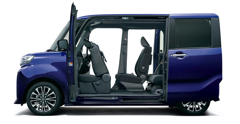 助手席側のセンターピラーが存在しない(ドアに内蔵されている)ダイハツ タントのミラクルオープンドア。写真はタント カスタム。