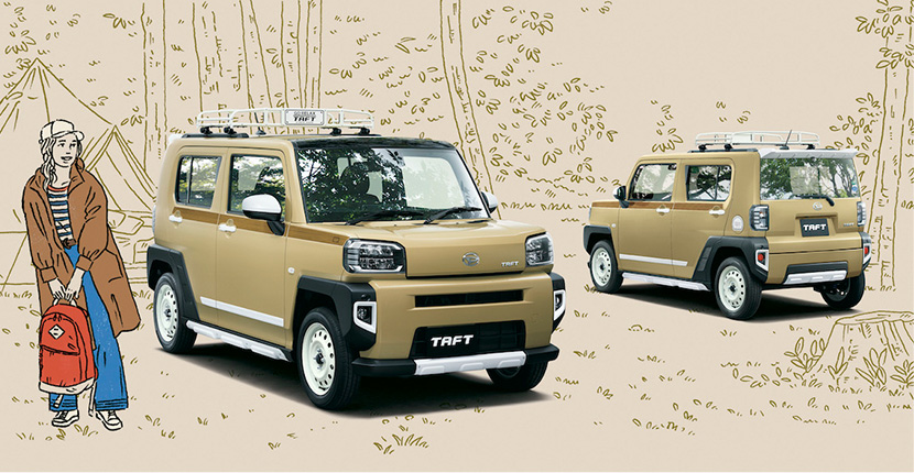 さまざまなタイプが豊富にラインナップされているのが最近の軽自動車。写真上はダイハツ タフトの純正アクセサリー装着車