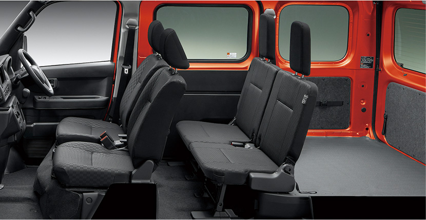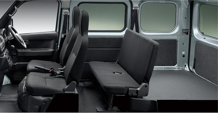 軽バンにもいちおうリアシートは付いていますが、軽バンの後方部分はあくまでも「荷物を載せるためのスペース」であるため、きわめて簡単にリアシートをたたみ、フルフラット状態にすることができます。逆にいうと、そうでないと荷物の輸送用の車としては使い物になりません。