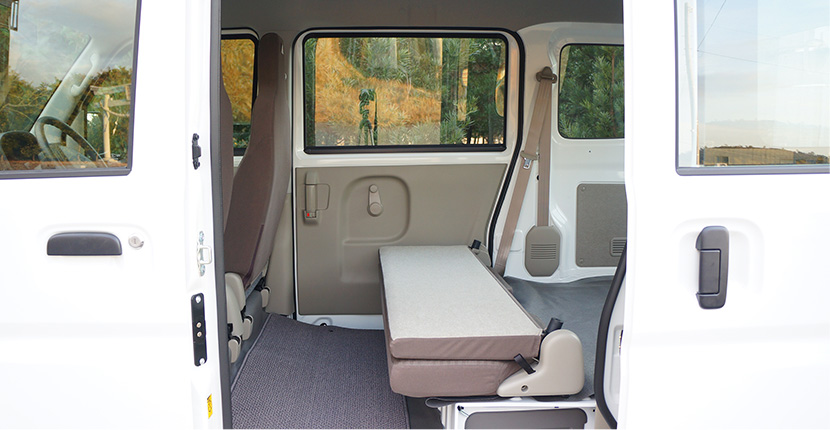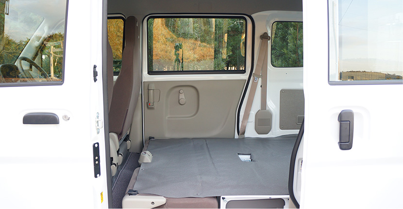 こういったことをはじめ荷物の輸送になるべく適するように設計された軽バンなわけですが、ハードな輸送業務に適しているということは、自動的に「アウトドアユースにも適している」ということになります。