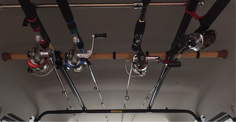 釣り竿を収納するために、天井側面にロッドホルダーを付けることだってできます。