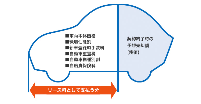 さらに、車両本体価格についてはその全額をリース料に含めているわけではなく、契約期間に応じた満了後の想定市場価値(=残価)を差し引いており、乗りたい分だけ月々の納付をすればよいという仕組みになっています(そのため、カーリースを「車のサブスク」と称して展開している事業者もあります)