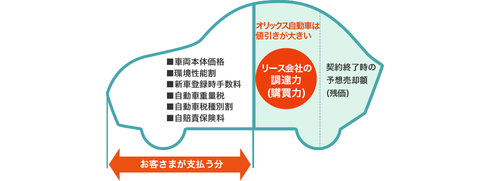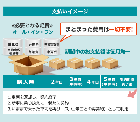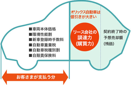 - 車両代、税金、登録諸費用などは全額、リース会社が負担します。