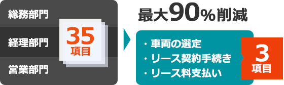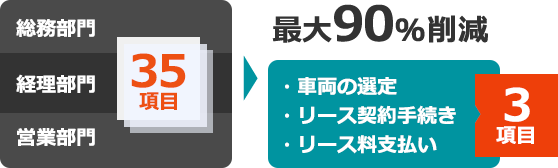 - ディーラーとの価格折衝、その支払い、各種税金の支払い、保険加入およびその期日管理、また点検・整備・継続車検・修理などの複雑な管理業務が一挙に削減されます
