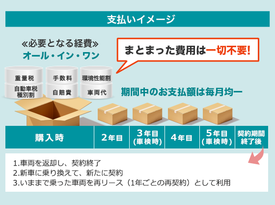 - ■「ファイナンスリース」:車両の調達コストをカバーするリースプランです。