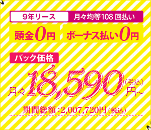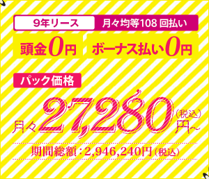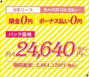 いまのりナインなら、そんな諸費用もコミコミで均等払いなので、お支払いもラクラクです。リース料に含まれる費用